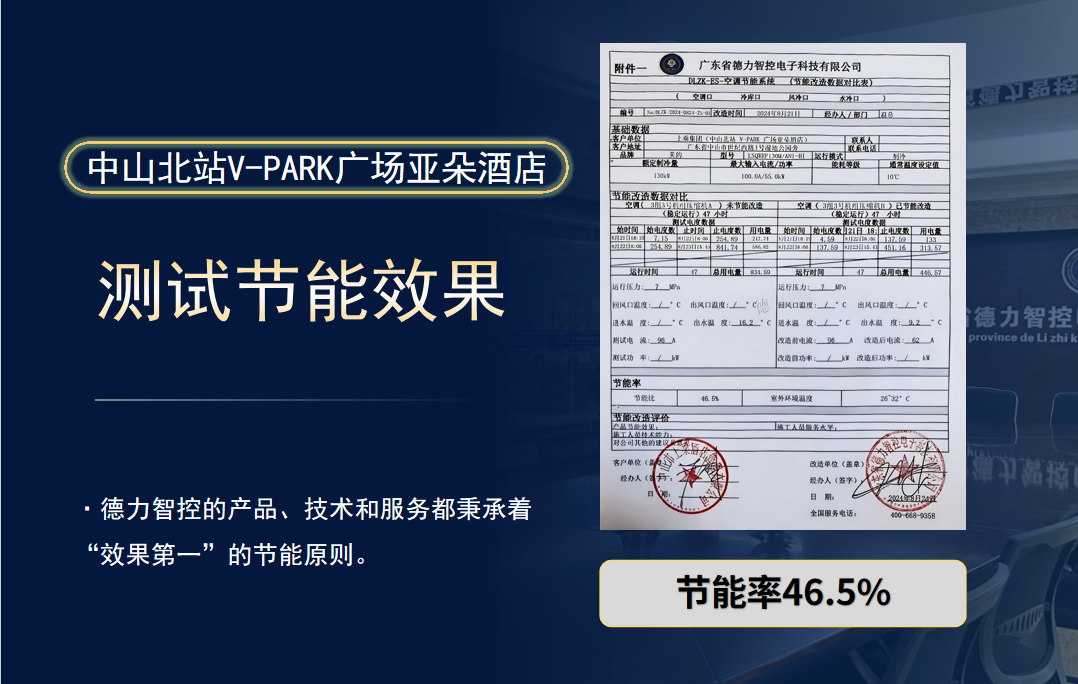廣東中山某精品酒店空調系統改造后節能率達46.5%,每年節省下巨額的電費支出。