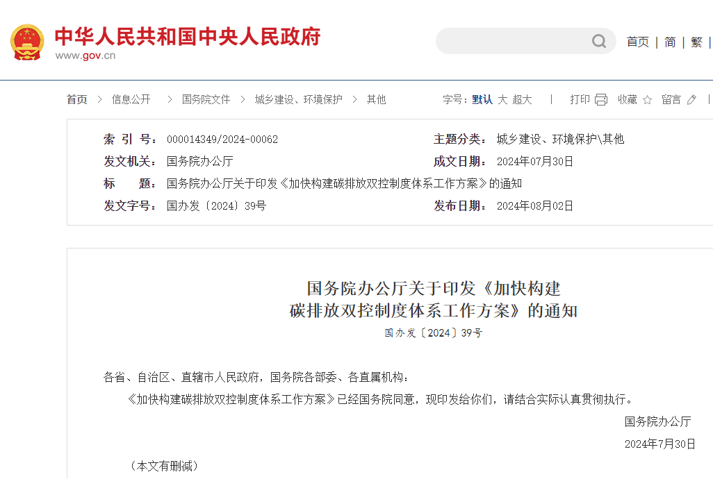 8月2日,國務院辦公廳印發《加快構建碳排放雙控制度體系工作方案》的通知。(以下簡稱《工作方案》)