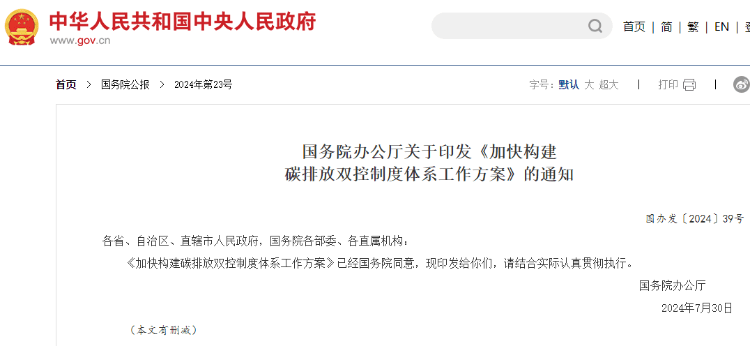 8月2日,國務院辦公廳印發了《加快構建碳排放雙控制度體系工作方案》(以下簡稱《方案》)。